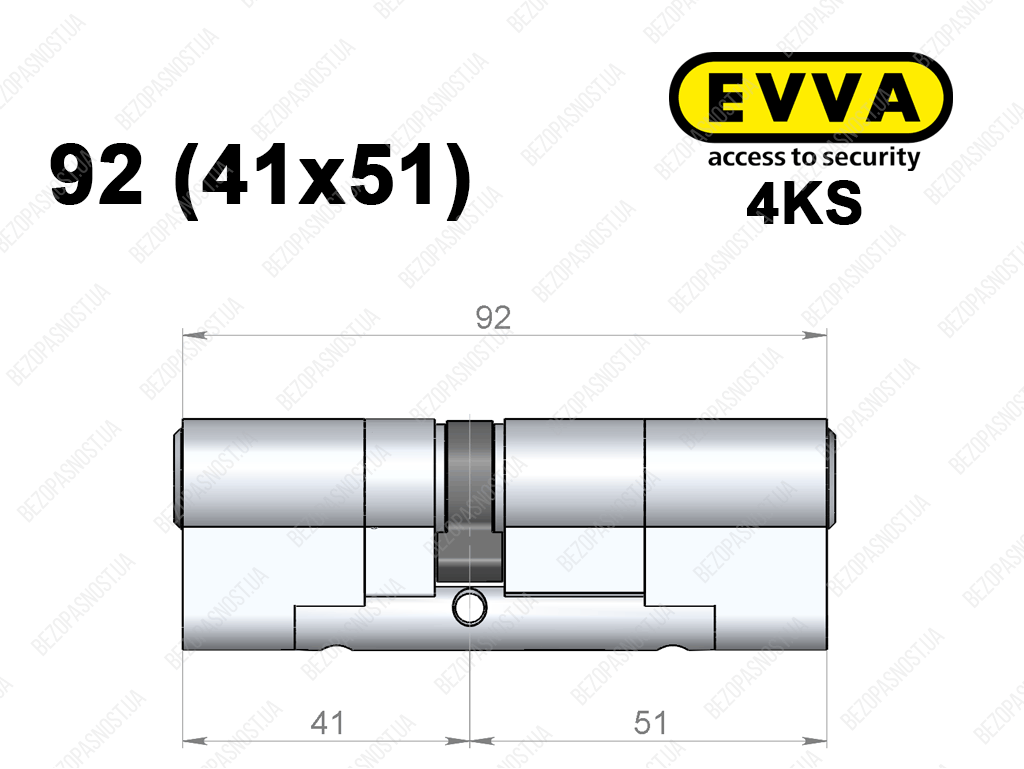 Циліндр EVVA 4KS 92 мм (41x51), ключ-ключ
