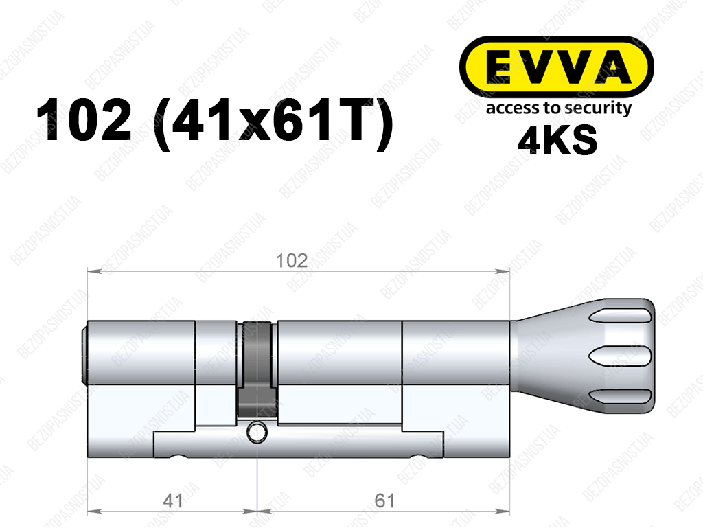 Цилиндр EVVA 4KS 102 мм (41x61T), с тумблером
