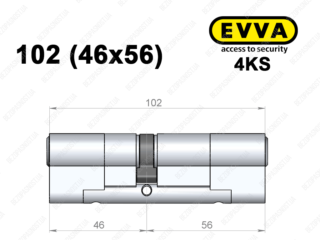 Цилиндр EVVA 4KS 102 мм (46x56), ключ-ключ
