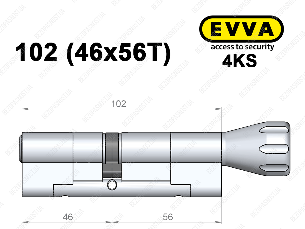 Цилиндр EVVA 4KS 102 мм (46x56T), с тумблером