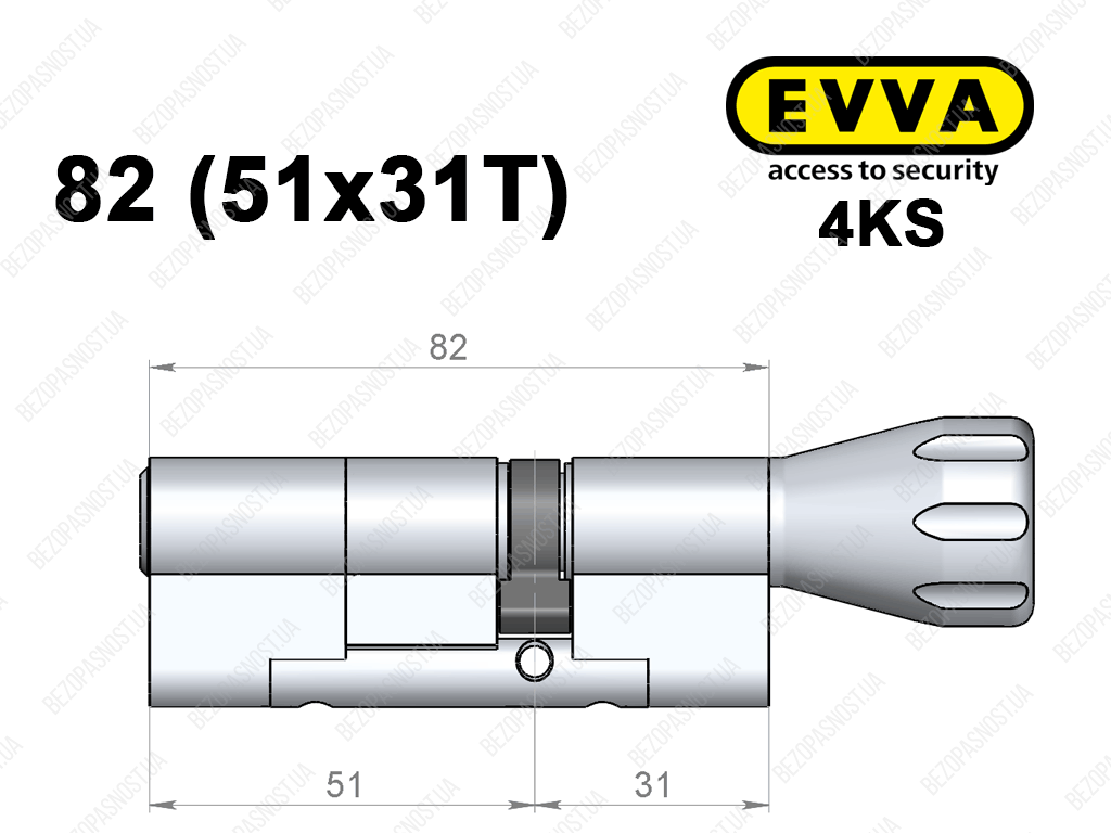 Цилиндр EVVA 4KS 82 мм (51x31T), с тумблером