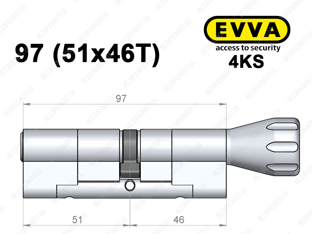 Циліндр EVVA 4KS 97 мм (51x46T), з тумблером