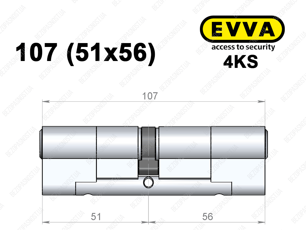Цилиндр EVVA 4KS 107 мм (51x56), ключ-ключ
