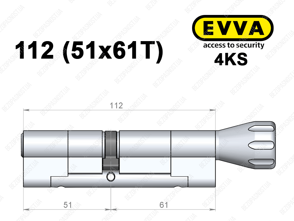 Циліндр EVVA 4KS 112 мм (51x61T), з тумблером