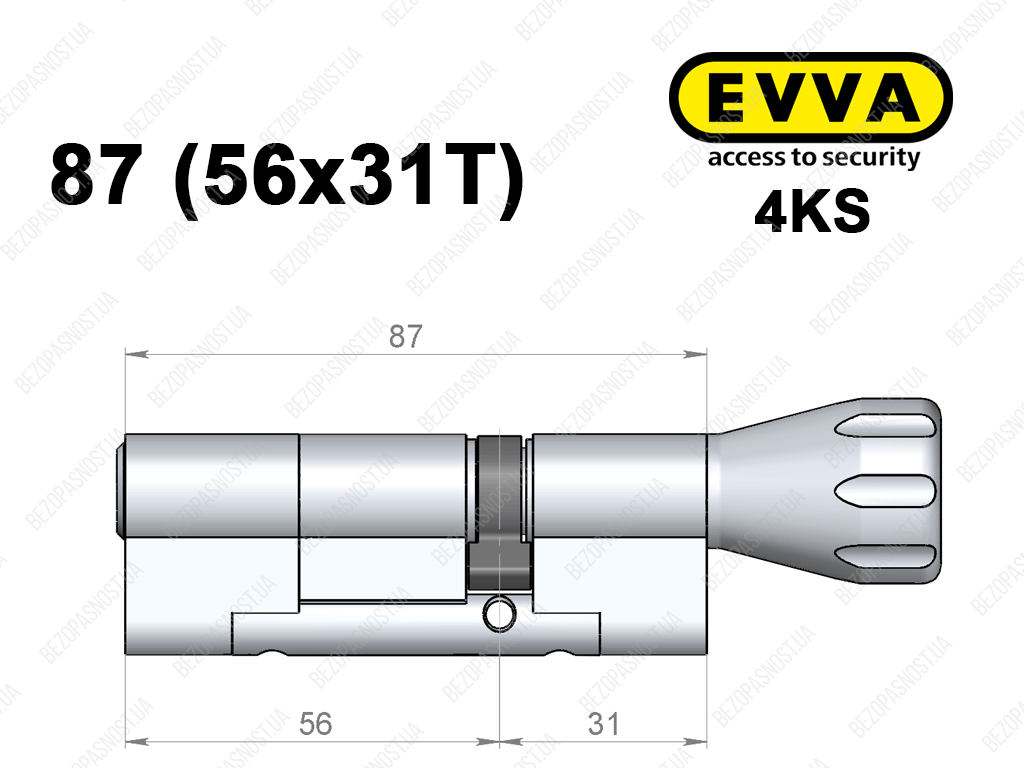 Цилиндр EVVA 4KS 87 мм (56x31T), с тумблером