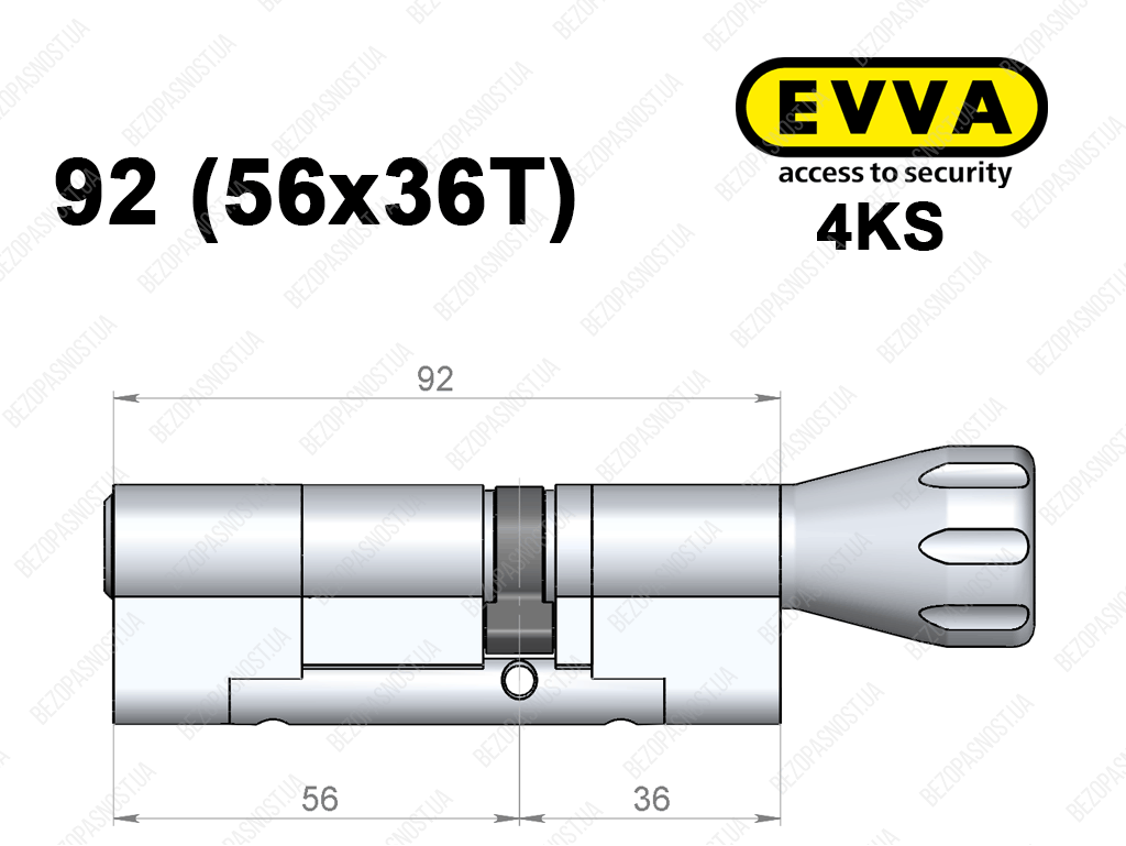 Циліндр EVVA 4KS 92 мм (56x36T), з тумблером
