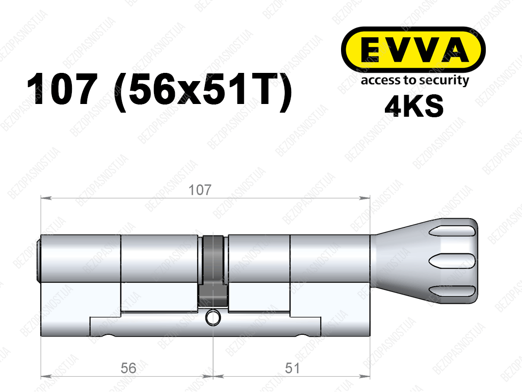 Цилиндр EVVA 4KS 107 мм (56x51T), с тумблером