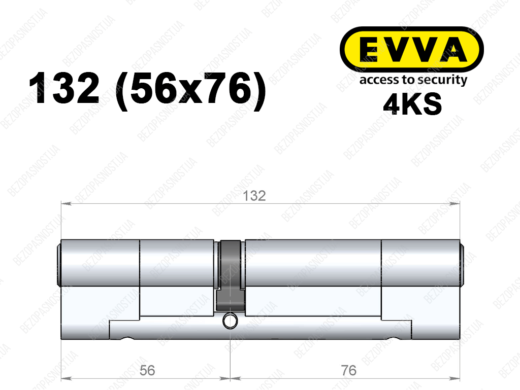 Циліндр EVVA 4KS 132 мм (56x76), ключ-ключ