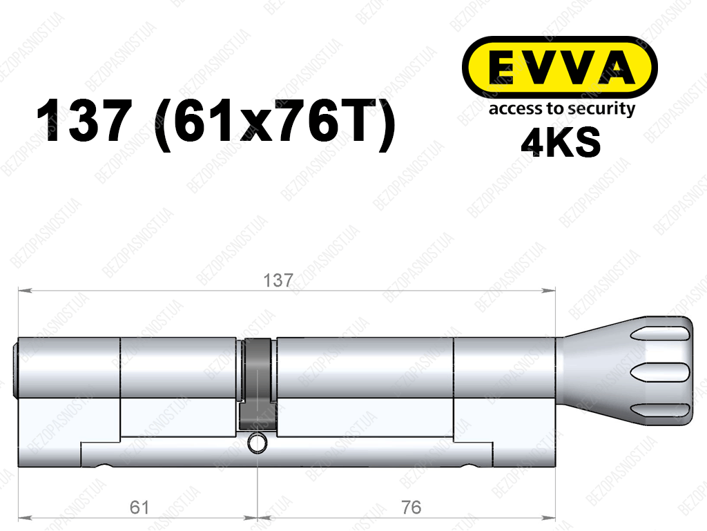 Циліндр EVVA 4KS 137 мм (61x76T), з тумблером