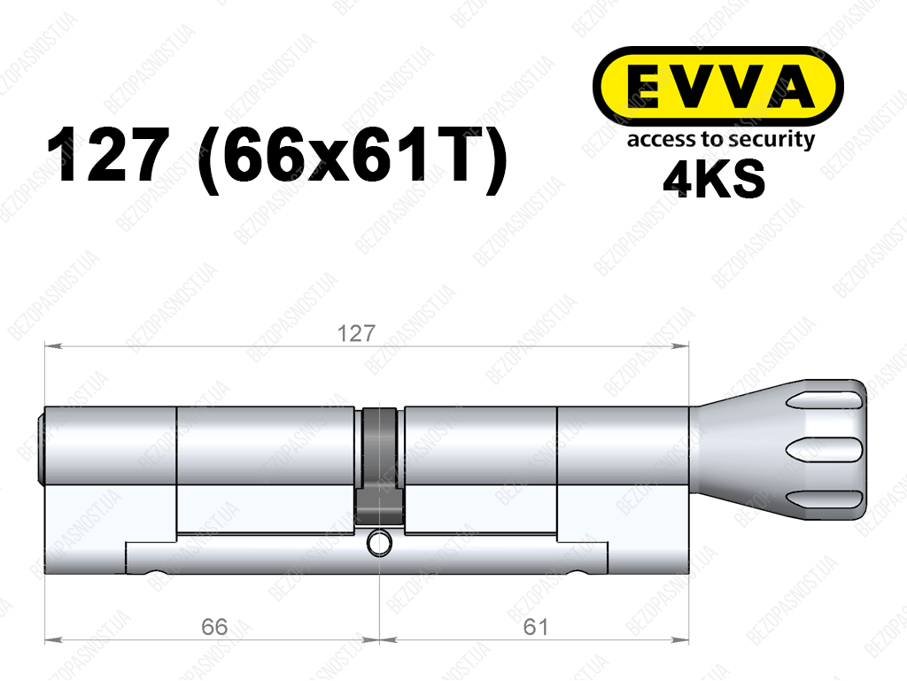 Циліндр EVVA 4KS 127 мм (66x61T), з тумблером