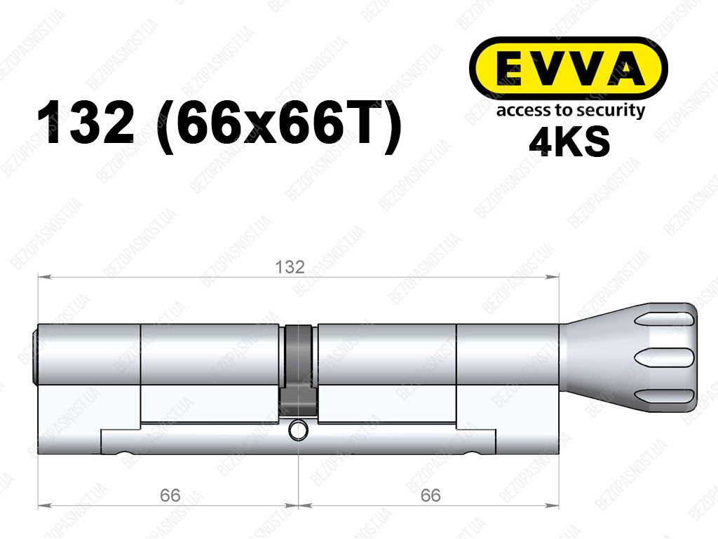 Циліндр EVVA 4KS 132 мм (66x66T), з тумблером