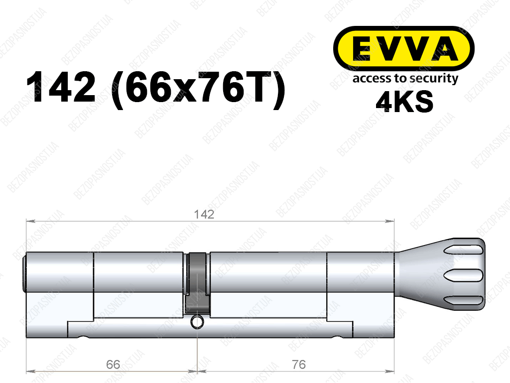 Цилиндр EVVA 4KS 142 мм (66x76T), с тумблером
