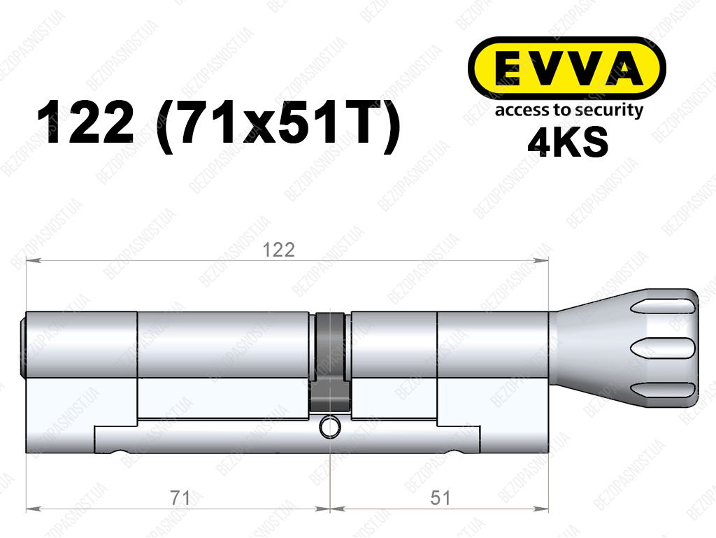 Циліндр EVVA 4KS 122 мм (71x51T), з тумблером