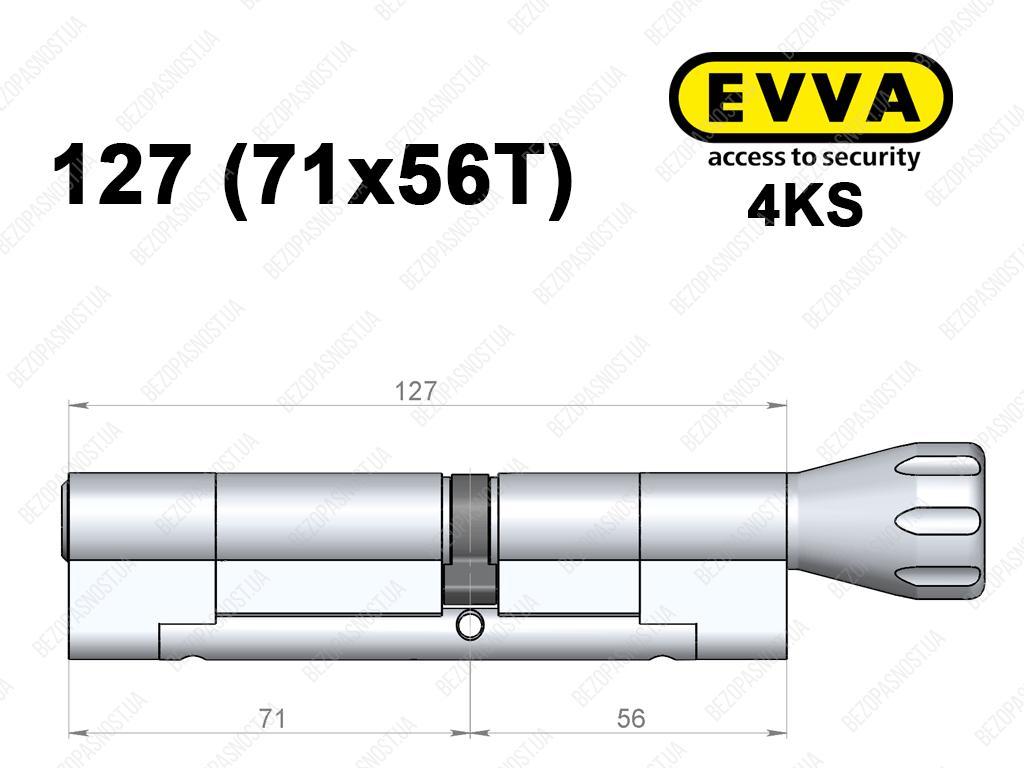 Циліндр EVVA 4KS 127 мм (71x56T), з тумблером