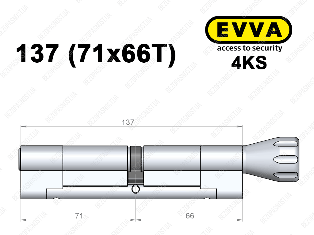 Циліндр EVVA 4KS 137 мм (71x66T), з тумблером