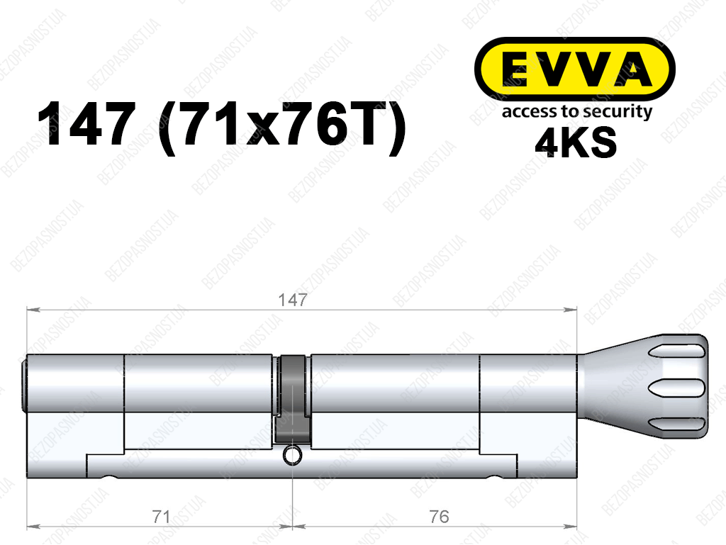Цилиндр EVVA 4KS 147 мм (71x76T), с тумблером