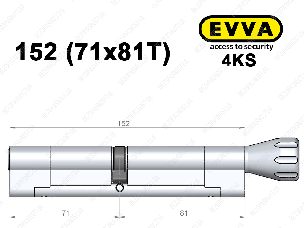 Цилиндр EVVA 4KS 152 мм (71x81T), с тумблером