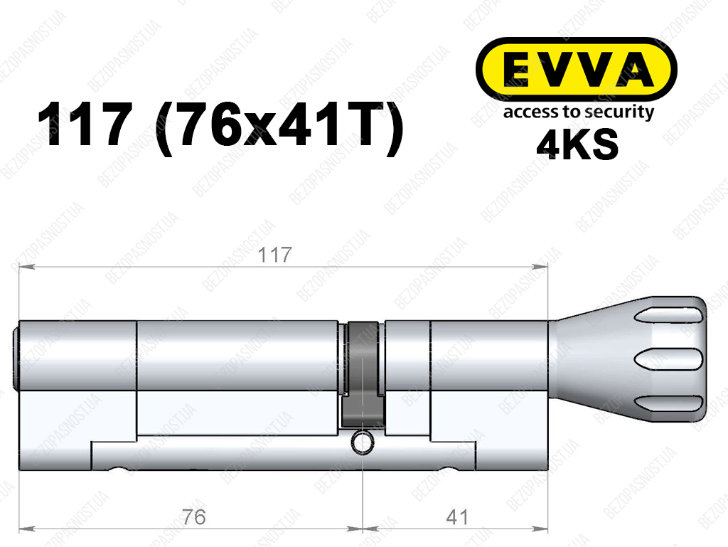 Циліндр EVVA 4KS 117 мм (76x41T), з тумблером