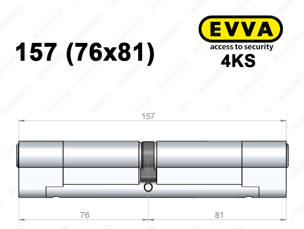 Циліндр EVVA 4KS 157 мм (76x81), ключ-ключ