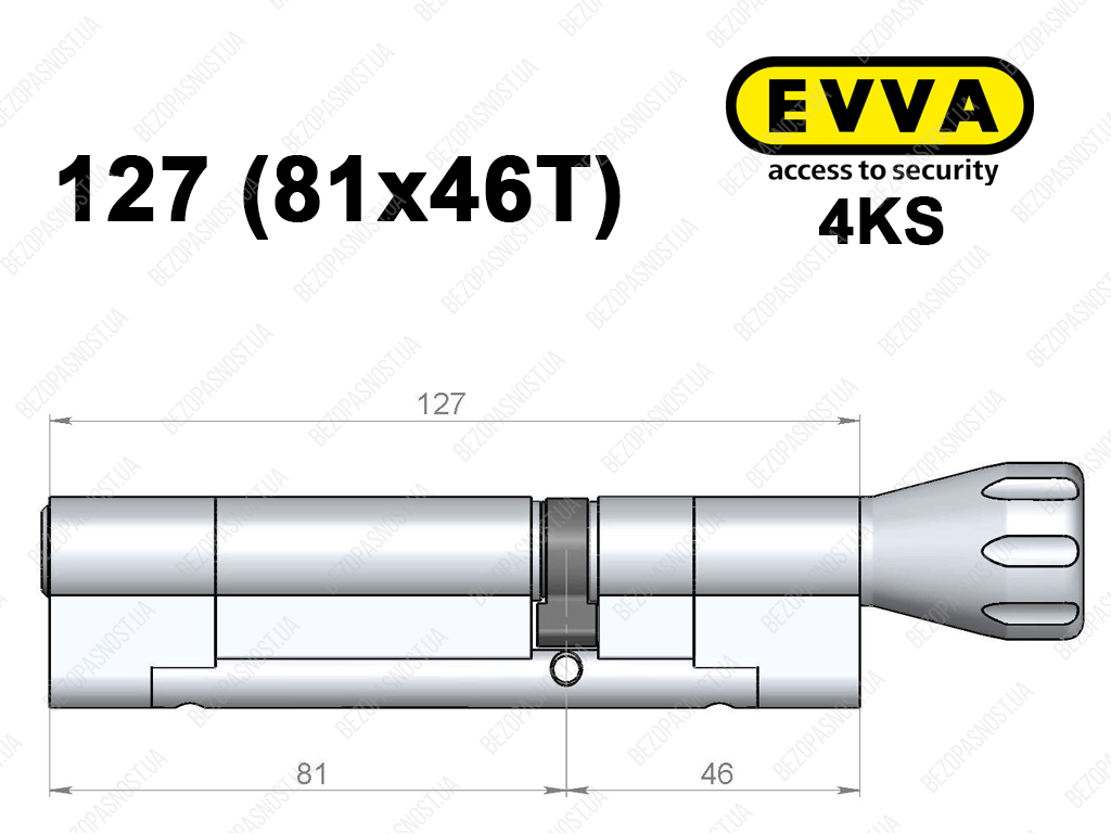 Циліндр EVVA 4KS 127 мм (81x46T), з тумблером