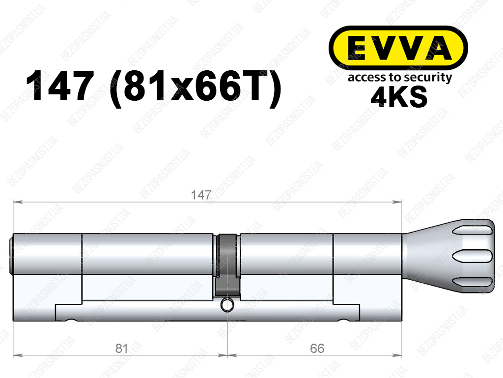 Циліндр EVVA 4KS 147 мм (81x66T), з тумблером
