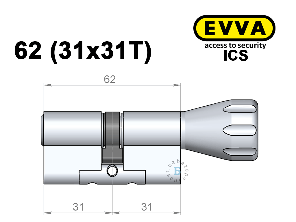 Цилиндр EVVA ICS 62 мм (31x31T), с тумблером