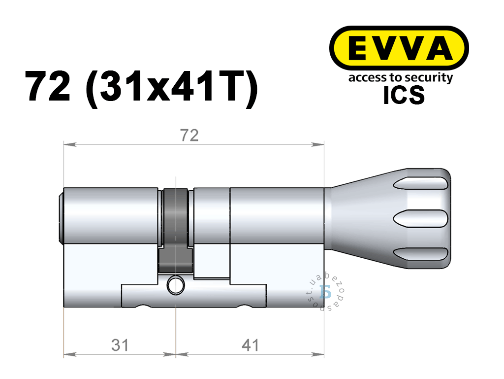 Цилиндр EVVA ICS 72 мм (31x41T), с тумблером