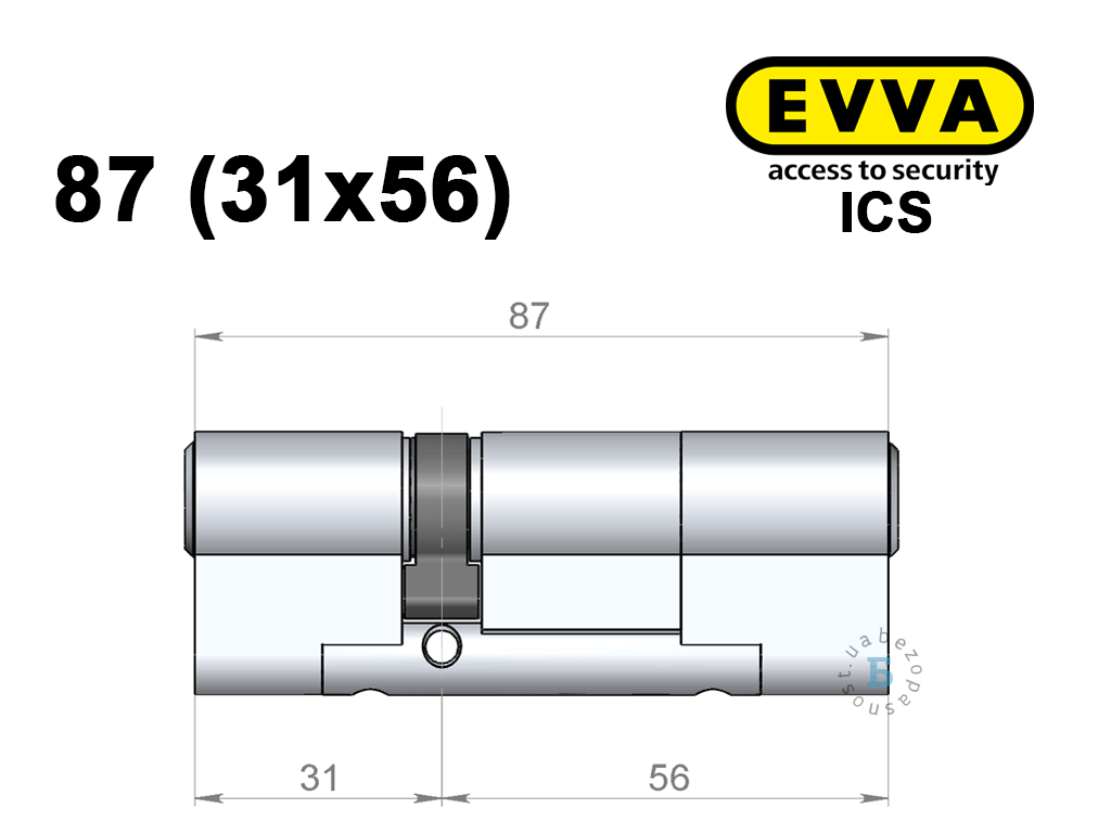 Цилиндр EVVA ICS 87 мм (31x56), ключ-ключ