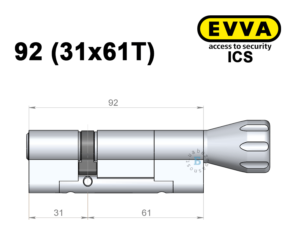 Цилиндр EVVA ICS 92 мм (31x61T), с тумблером
