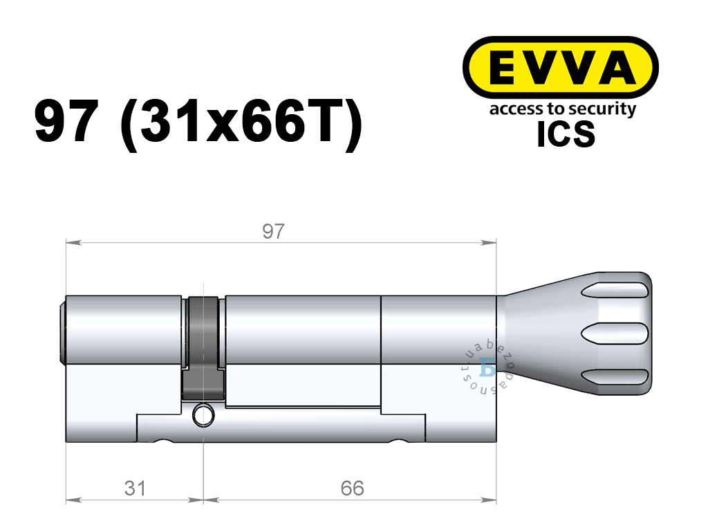 Цилиндр EVVA ICS 97 мм (31x66T), с тумблером