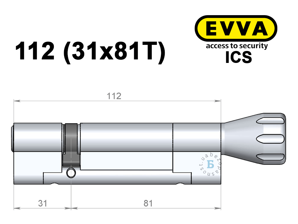 Цилиндр EVVA ICS 112 мм (31x81T), с тумблером