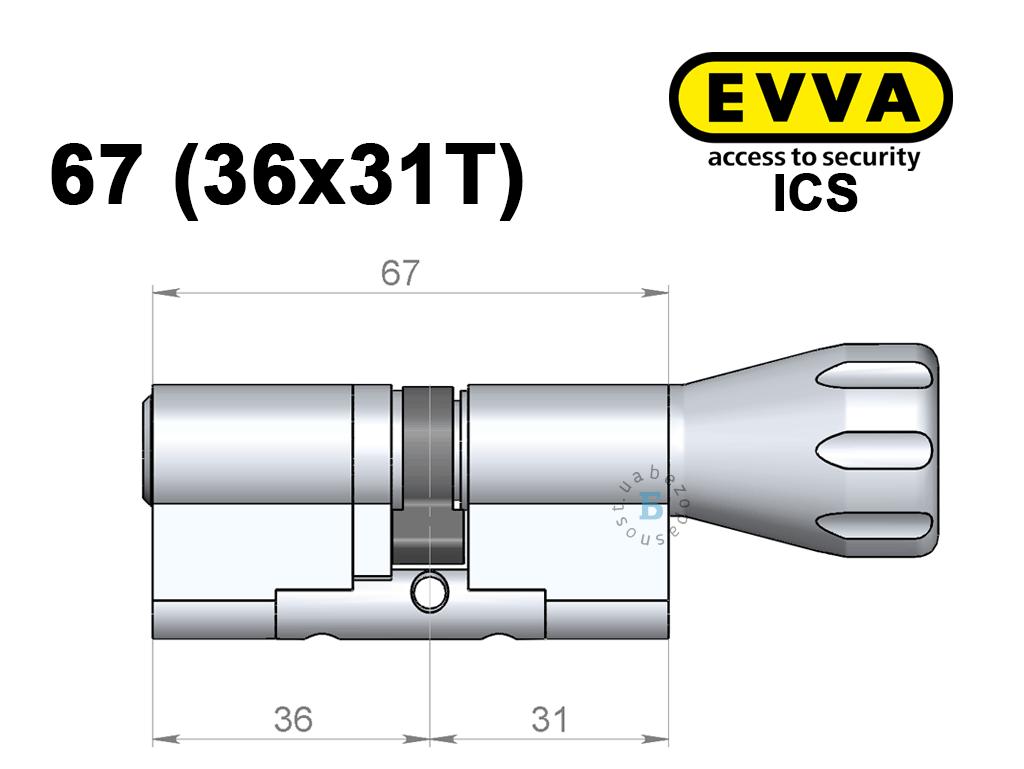 Цилиндр EVVA ICS 67 мм (36x31T), с тумблером