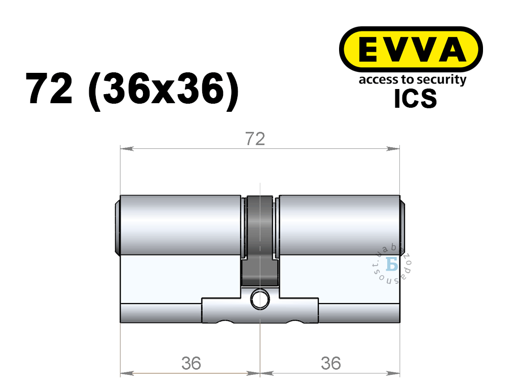 Цилиндр EVVA ICS 72 мм (36x36), ключ-ключ