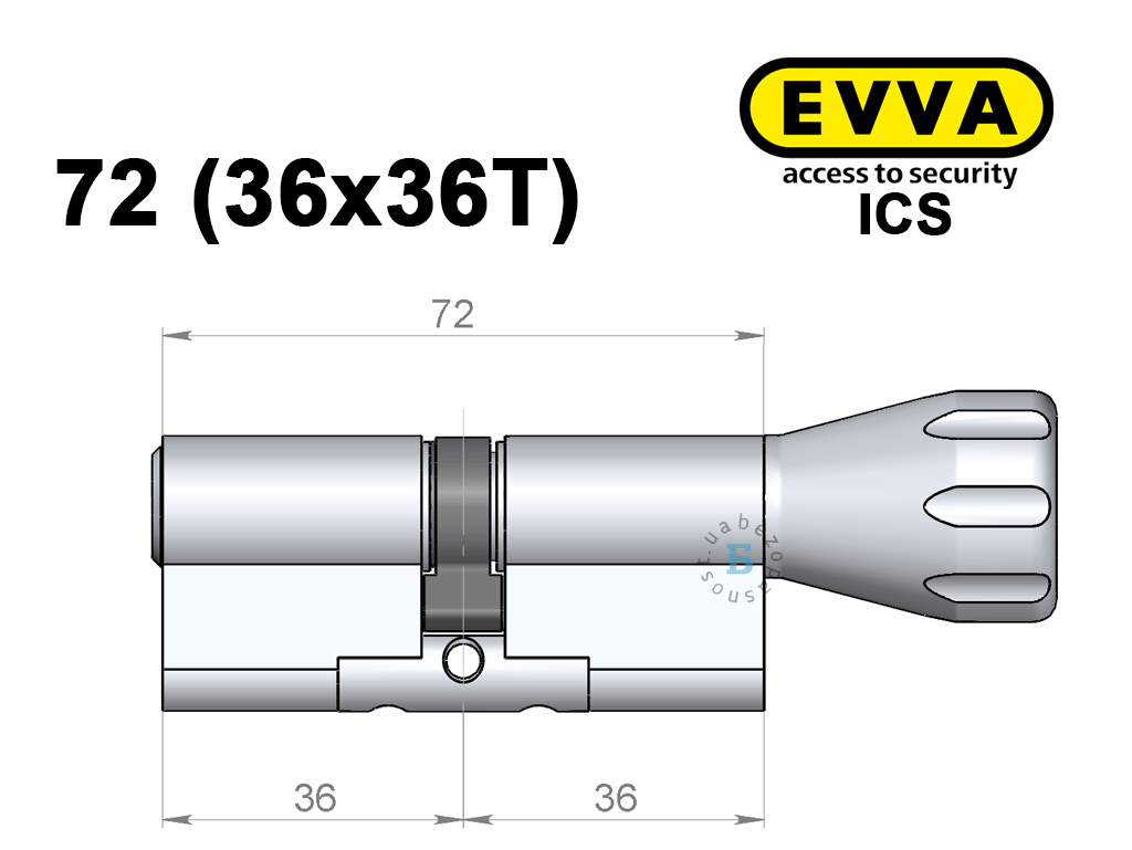 Цилиндр EVVA ICS 72 мм (36x36T), с тумблером