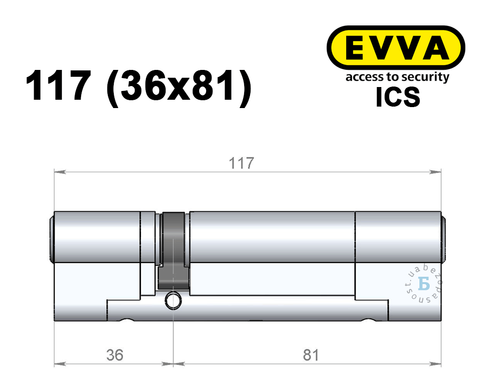 Цилиндр EVVA ICS 117 мм (36x81), ключ-ключ