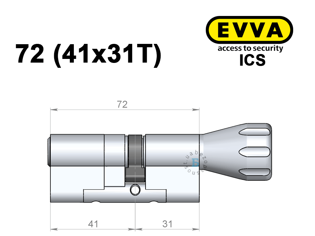 Циліндр EVVA ICS 72 мм (41x31T), з тумблером