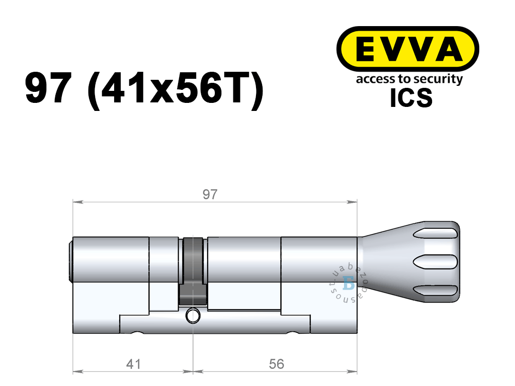 Цилиндр EVVA ICS 97 мм (41x56T), с тумблером