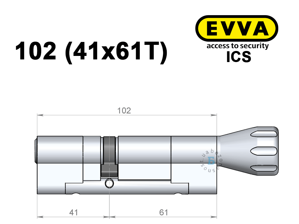 Цилиндр EVVA ICS 102 мм (41x61T), с тумблером