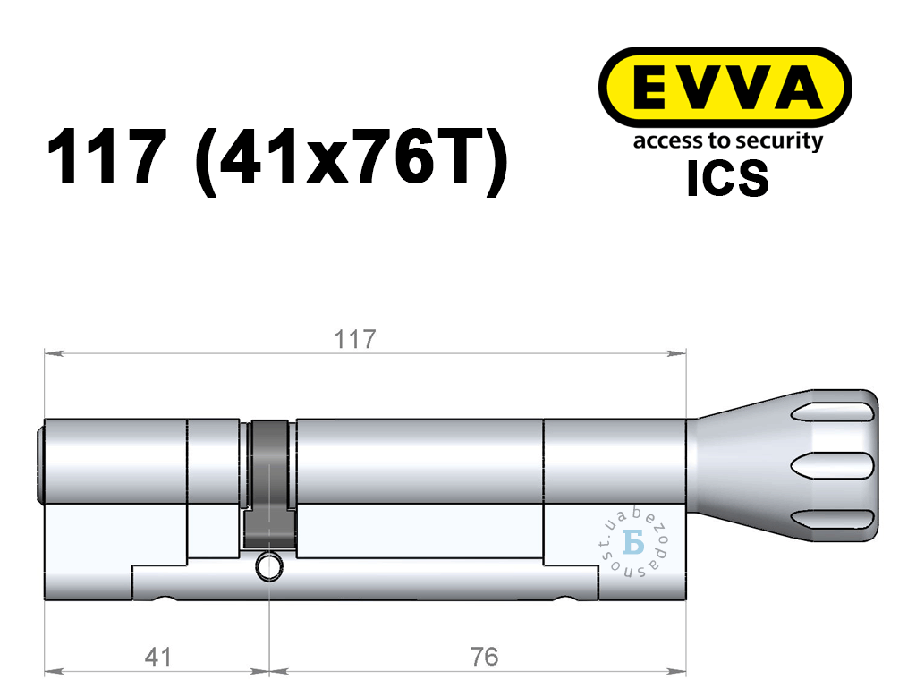 Циліндр EVVA ICS 117 мм (41x76T), з тумблером