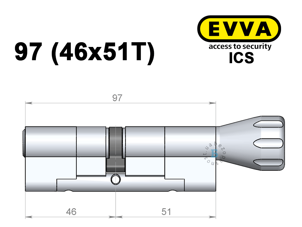 Цилиндр EVVA ICS 97 мм (46x51T), с тумблером