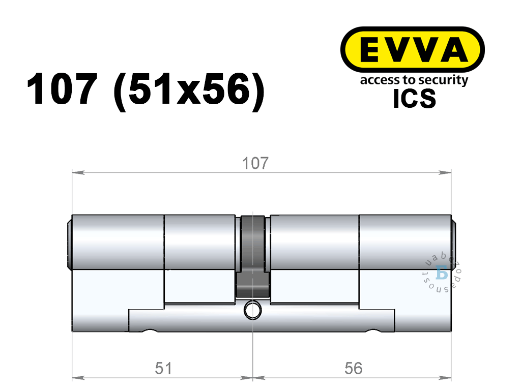 Цилиндр EVVA ICS 107 мм (51x56), ключ-ключ