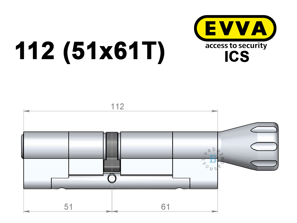 Циліндр EVVA ICS 112 мм (51x61T), з тумблером