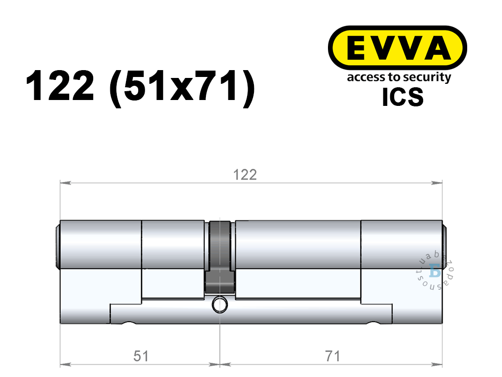 Цилиндр EVVA ICS 122 мм (51x71), ключ-ключ