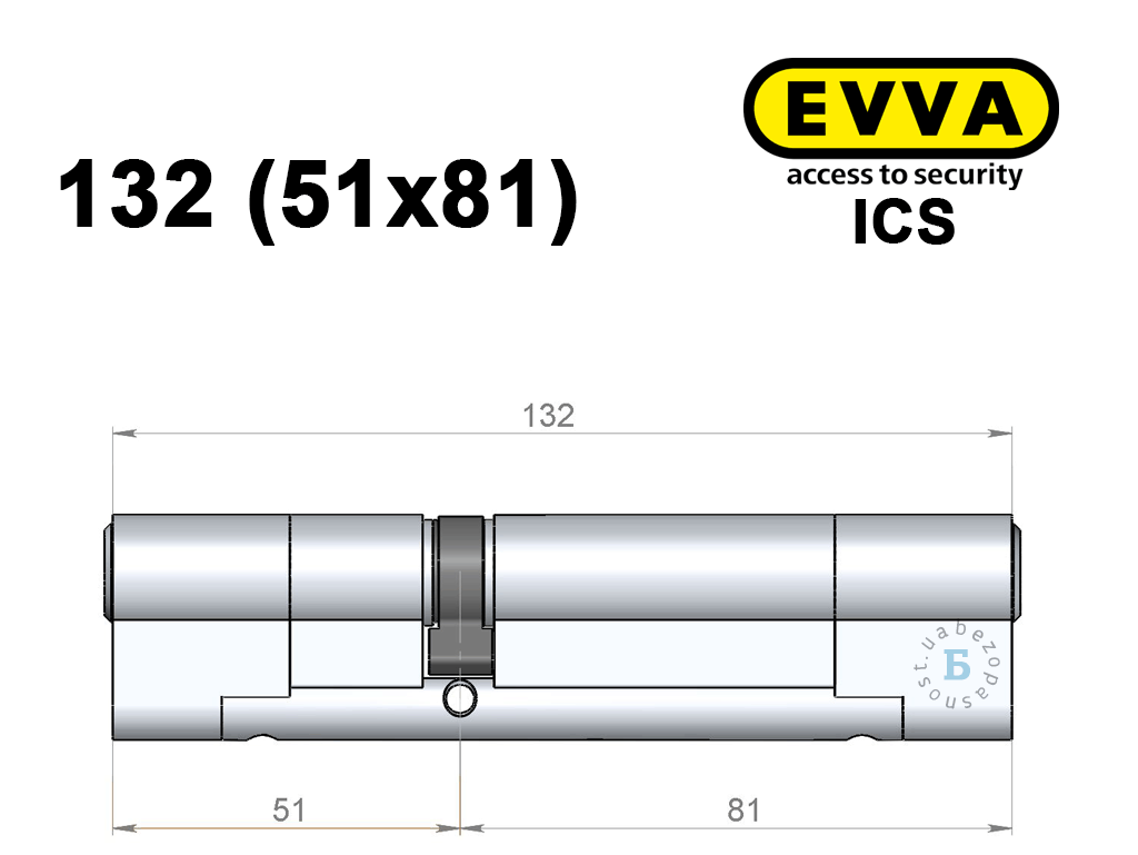 Цилиндр EVVA ICS 132 мм (51x81), ключ-ключ
