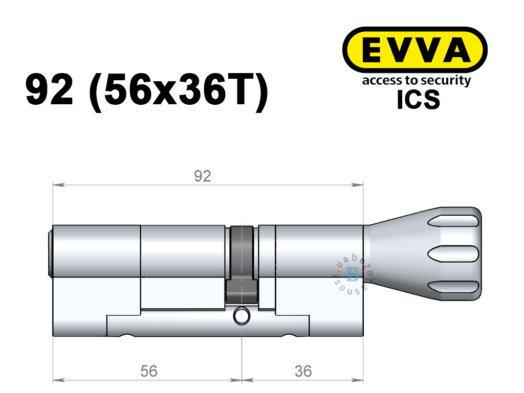 Цилиндр EVVA ICS 92 мм (56x36T), с тумблером