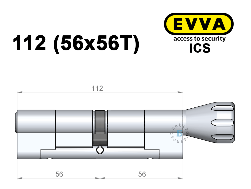 Цилиндр EVVA ICS 112 мм (56x56T), с тумблером