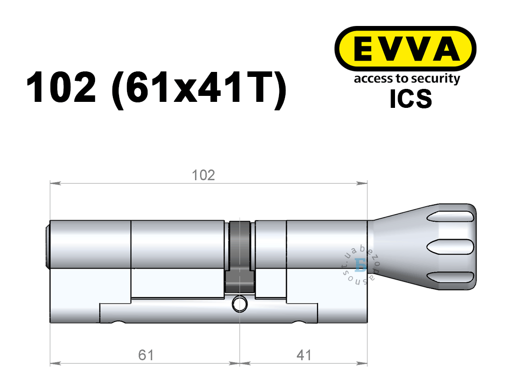 Циліндр EVVA ICS 102 мм (61x41T), з тумблером