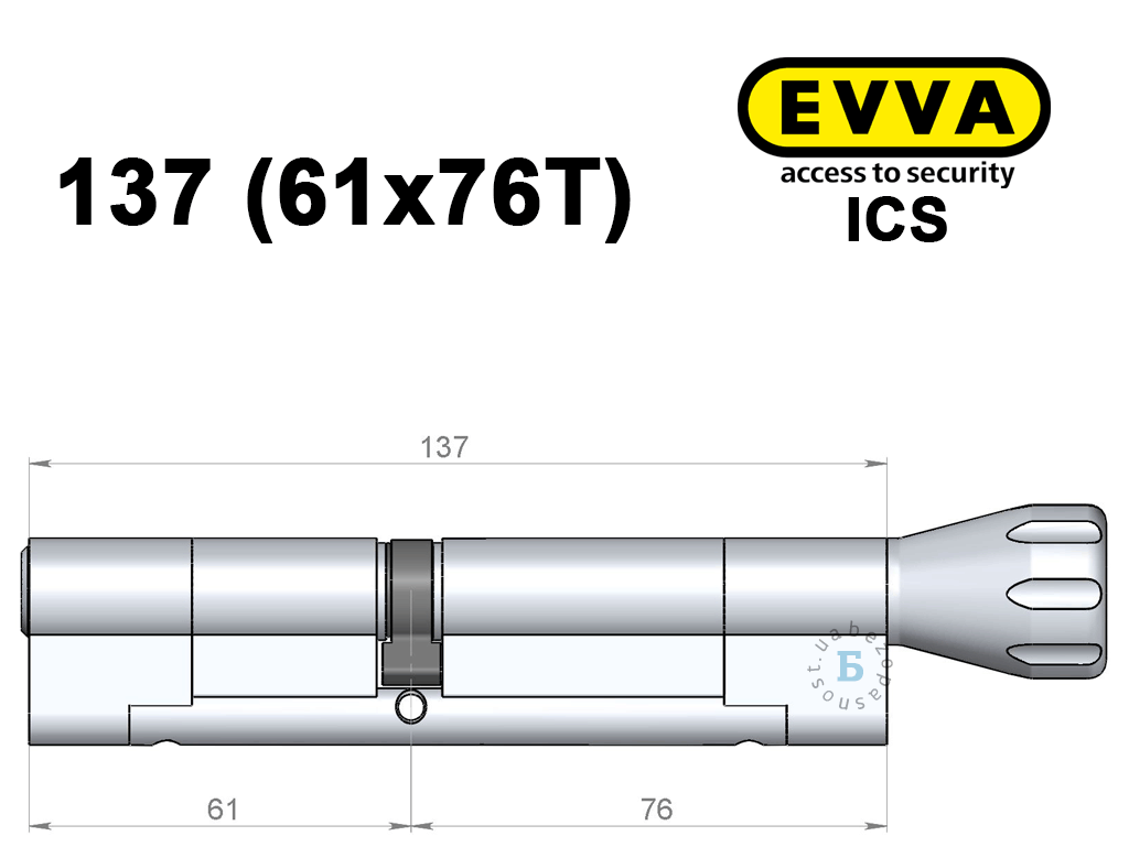 Циліндр EVVA ICS 137 мм (61x76T), з тумблером