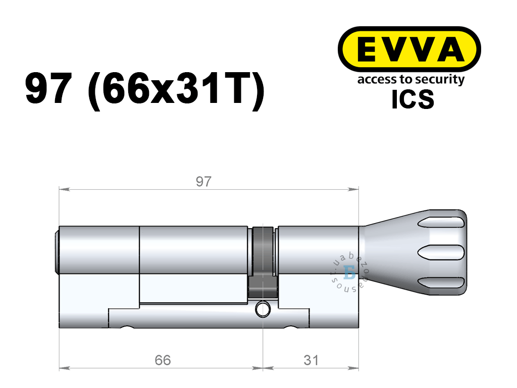 Цилиндр EVVA ICS 97 мм (66x31T), с тумблером