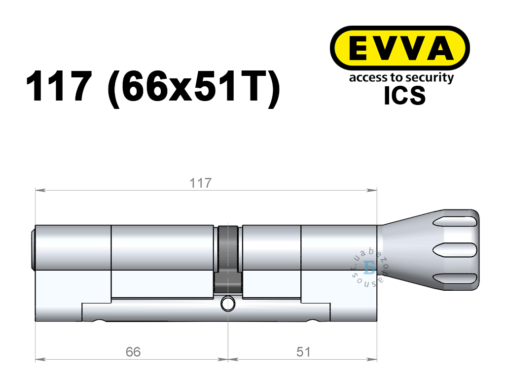 Цилиндр EVVA ICS 117 мм (66x51T), с тумблером